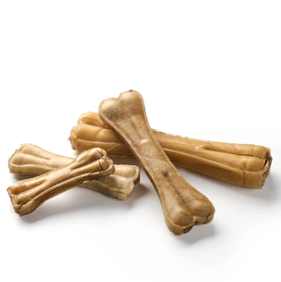 Die Büffelhautknochen bestehen aus 80% getrocknetem Büffelpansen und 20% getrockneter Büffelhaut.