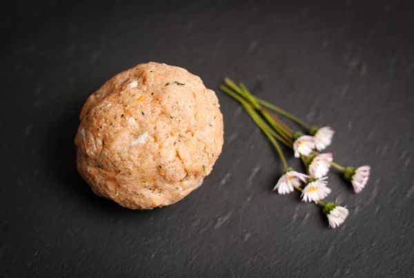 80% Lachs gebrüht, verfeinert mit knackigen Karotten, Pastinaken, Salat und gesunden Heidelbeeren!