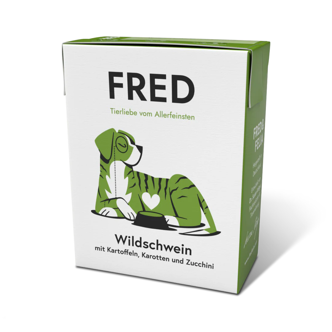 41% Wildschwein* (Muskelfleisch), Kartoffeln* (25%), Wasser* (20%), Karotten* (4,5%), Zucchini* (4,5%), Apfel* (2,5%), Leinöl*, Distelöl*, Flohsamenschalen*, Mineralstoffe