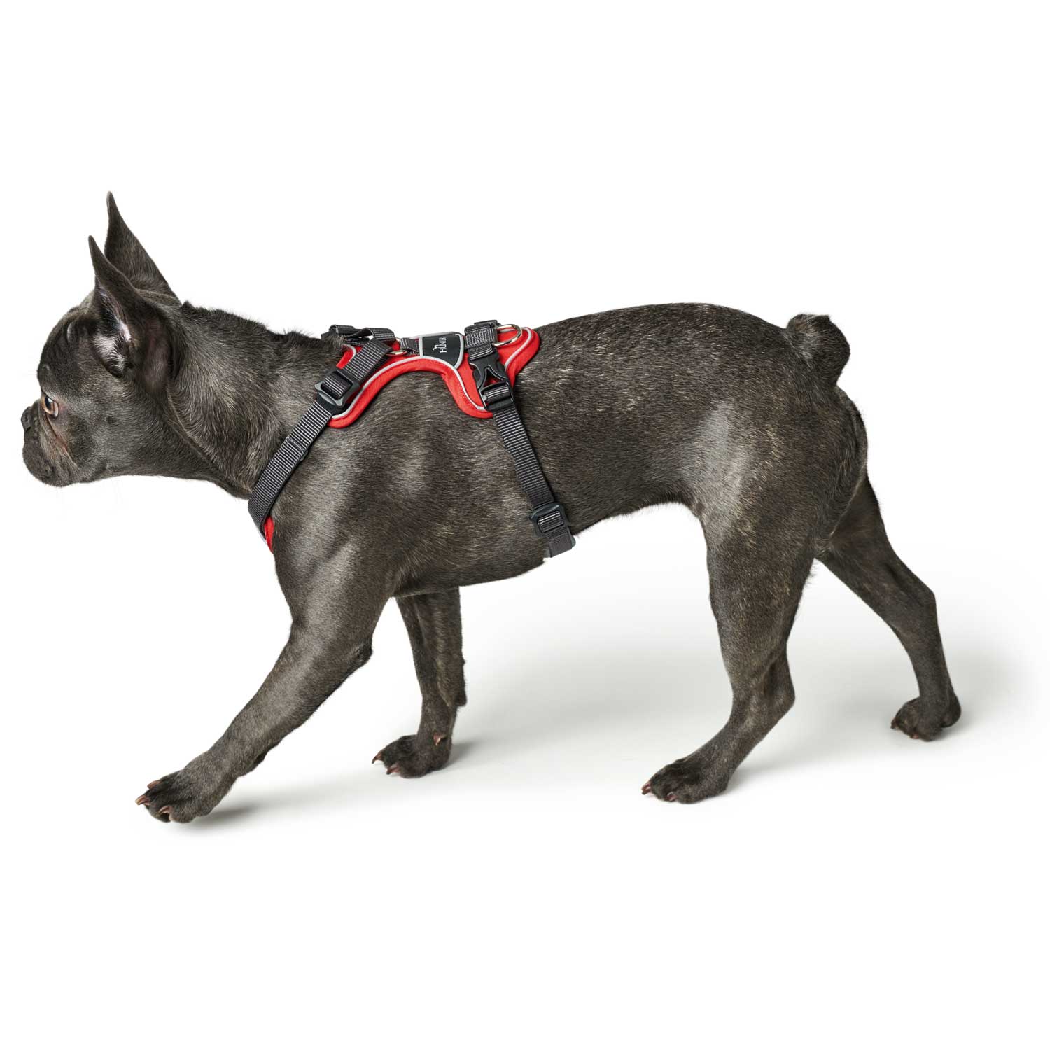 • mit zwei D-Ringen zum Anleinen am Rücken oder im Brustbereich des Hundes