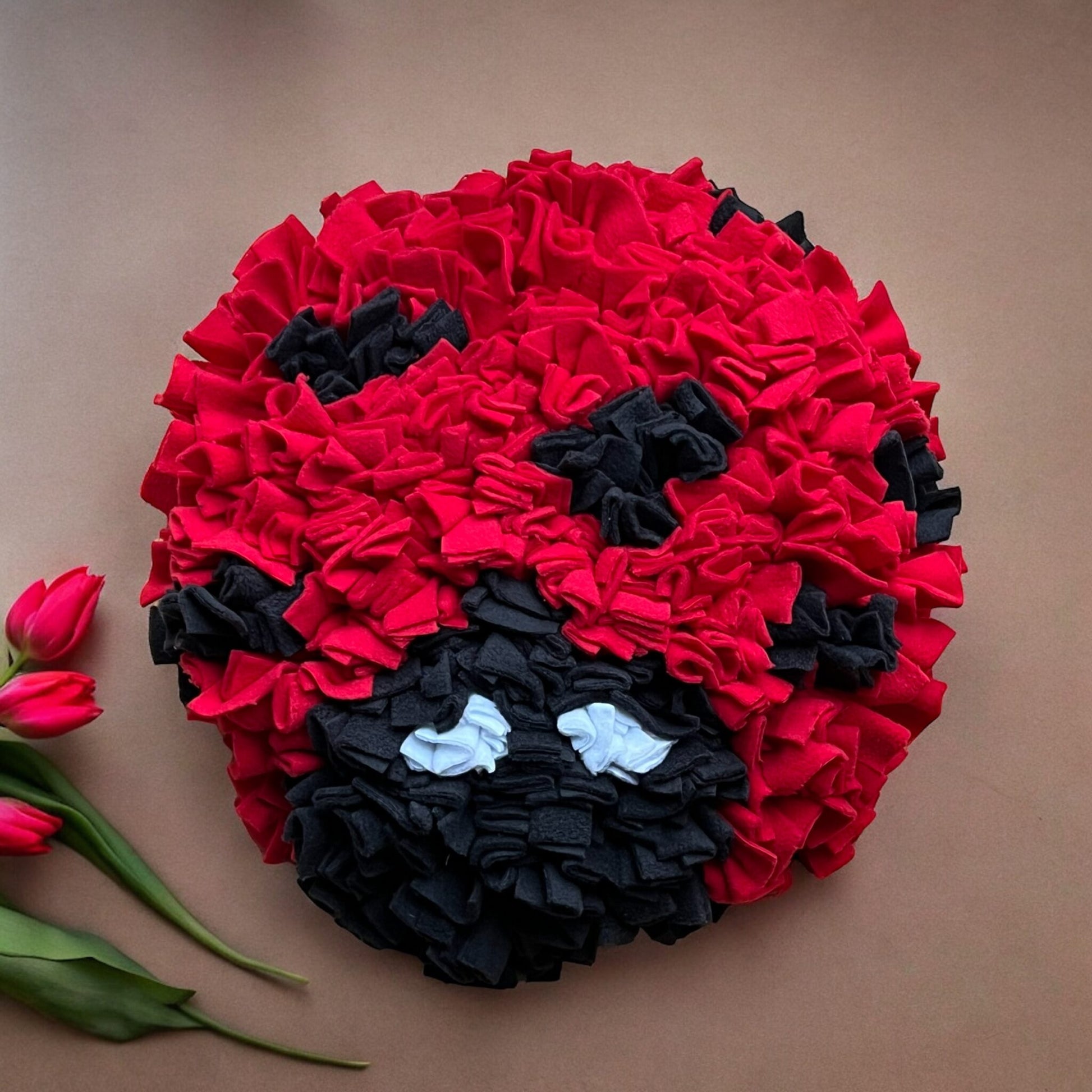 Großer Schnüffelteppich in den Farben Rot, Weiß & Schwarz in Marienkäfer Optik