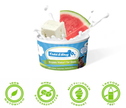 Der ultimative Frischekick. Wer kennt diesen Moment nicht wenn Deine Fellnase herzhaft und mit viel Freude in eine kalte Wassermelone beißt. Ab jetzt kann diese auch direkt aus dem Eisbecher genossen werden. Das leckere Hundeeis von Cold&Dog überzeugt mit gesunder Rezeptur, ausgesuchten Zutaten und liebevoller Handarbeit. Die erfrischende Sorte Wassermelonen Spritz besteht aus laktosefreiem Joghurt, Bio-Agavendicksaft, Wassermelone (Bio), Feta sowie gesunden Ölen. Das erste Berliner Hundeeis verzichtet auf Zuckerzusätze und Konservierungsstoffe und eignet sich als ein gesunder Hundesnack für zwischendurch.