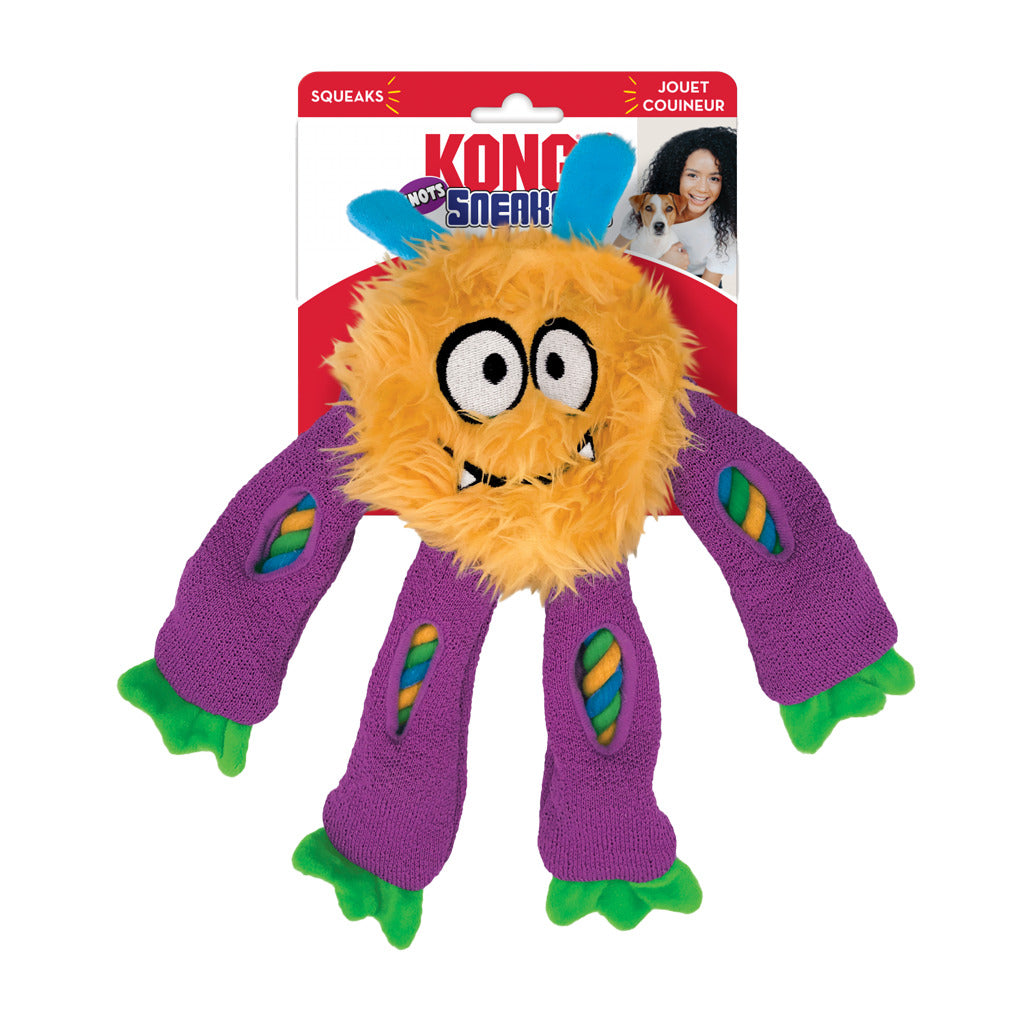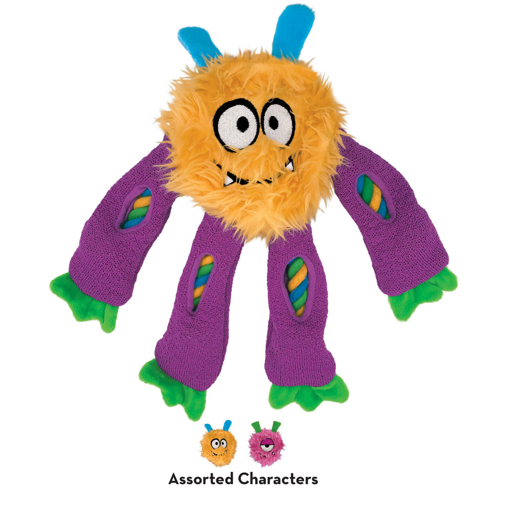 Das robuste Innenseil von Sneakerz Knots ist mit einem Seilknoten im Kopf versehen, der bis in die Beine reicht und so Gelegenheit für angemessenes Kauverhalten bietet. Einzigartige Guckfenster wecken die Neugierde und verlängern die Beschäftigung mit Suchspaß. Die langen, baumelnden Beine eignen sich hervorragend zum Schütteln und sind aus griffigem Tennisschuh-Material mit Quietscher für interaktiven Zerr- und Spielspaß mit diesen fröhlichen Spielgefährten.