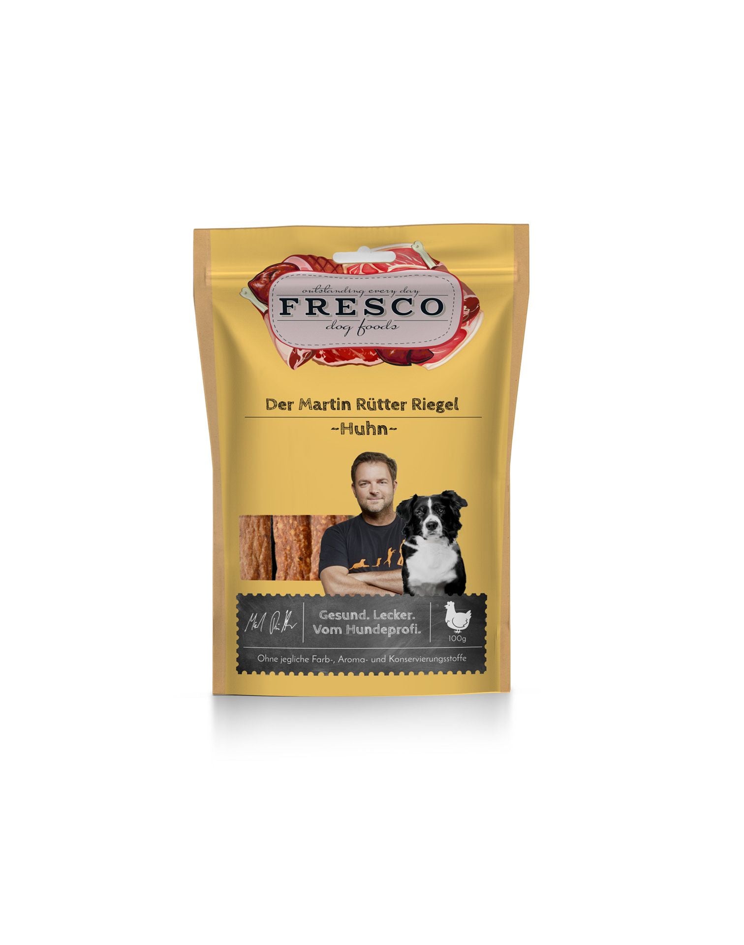 In Zusammenarbeit mit Hundeprofi Martin Rütter wurde eine gesunde und leckere Belohnung für Deinen Hund kreiert: Den Martin Rütter Riegel aus magerem Hühnerfleisch. Er enthält ausschließlich gesunde und natürliche Zutaten – ohne künstliche Zusätze.
