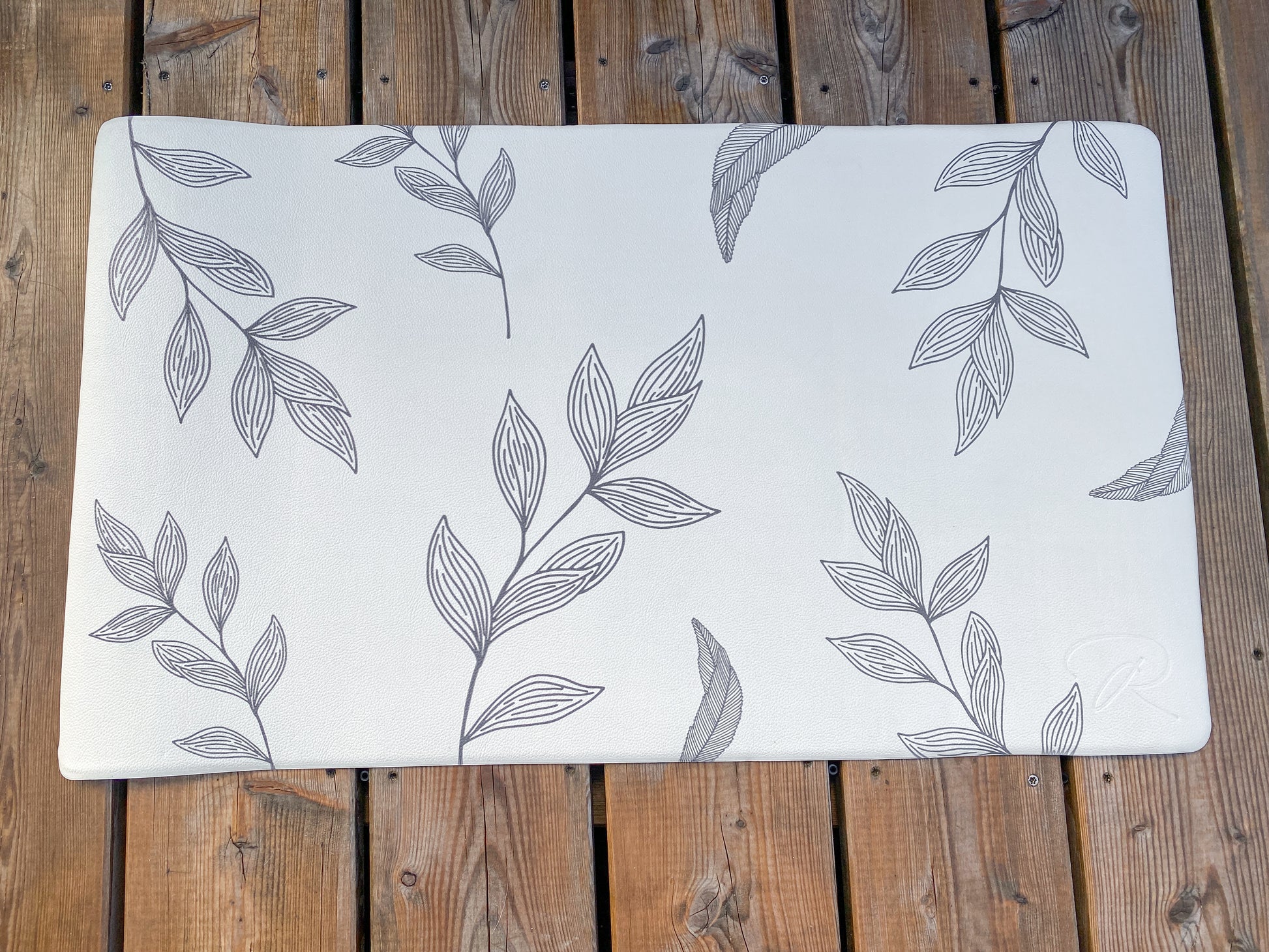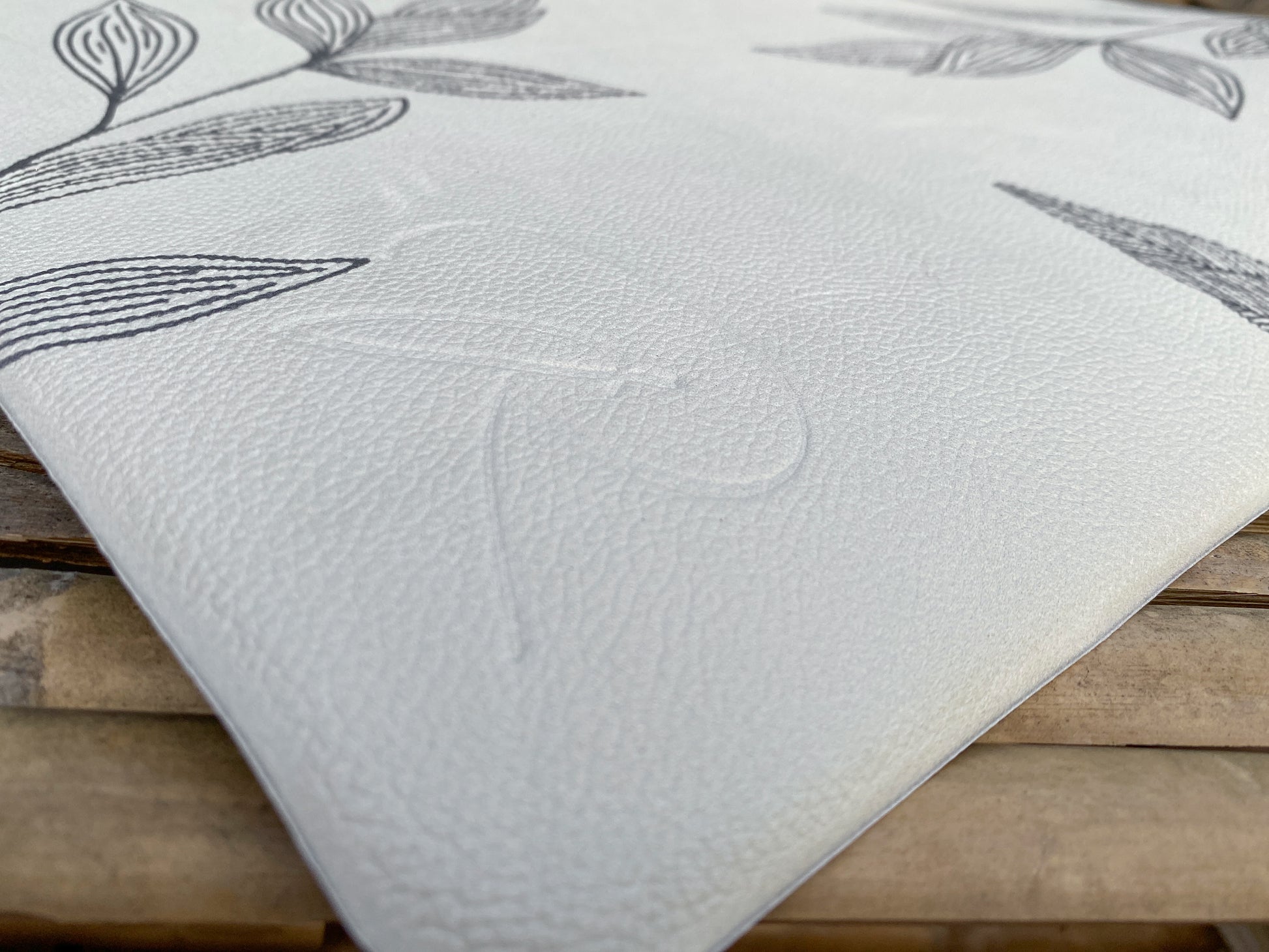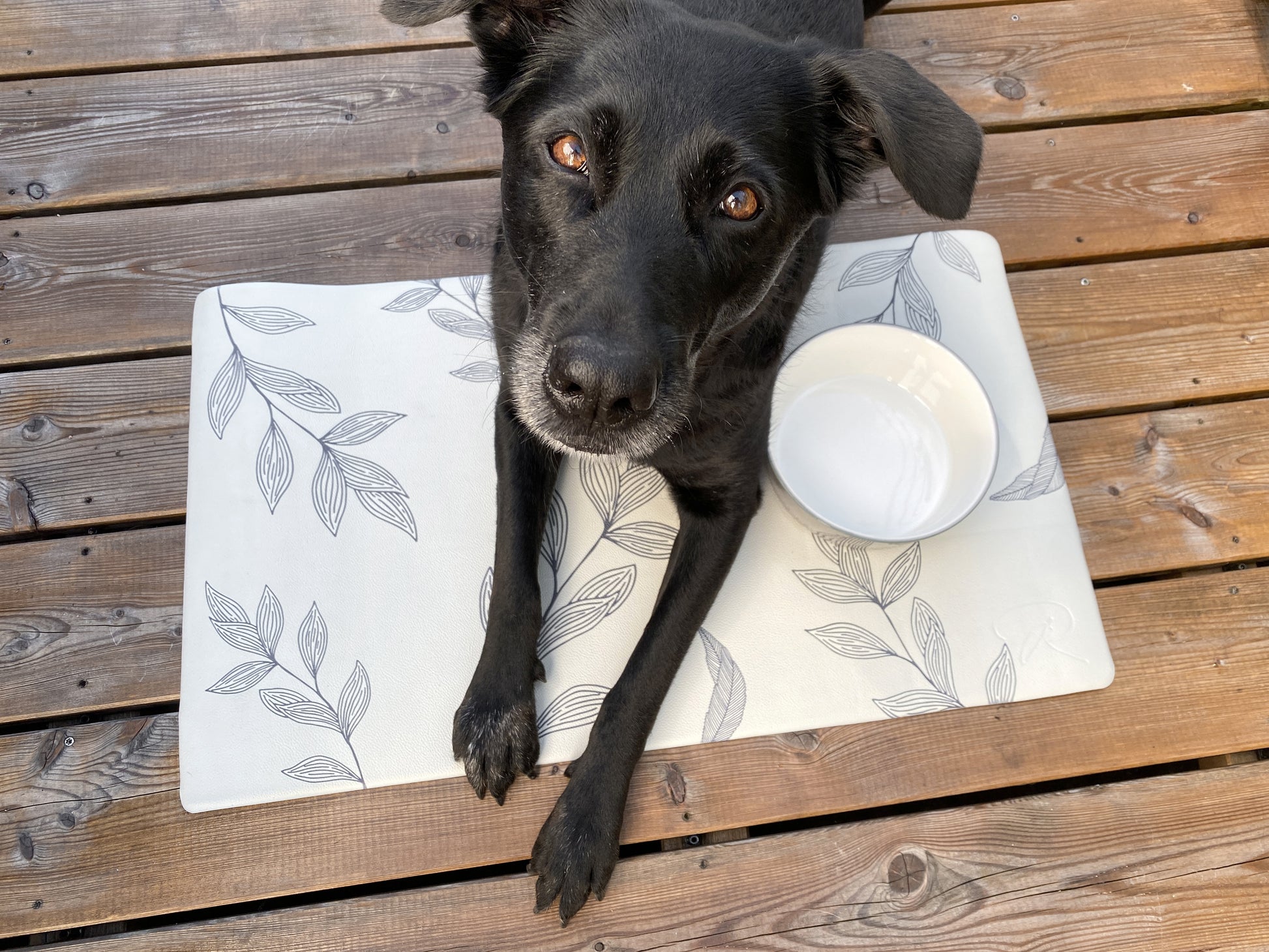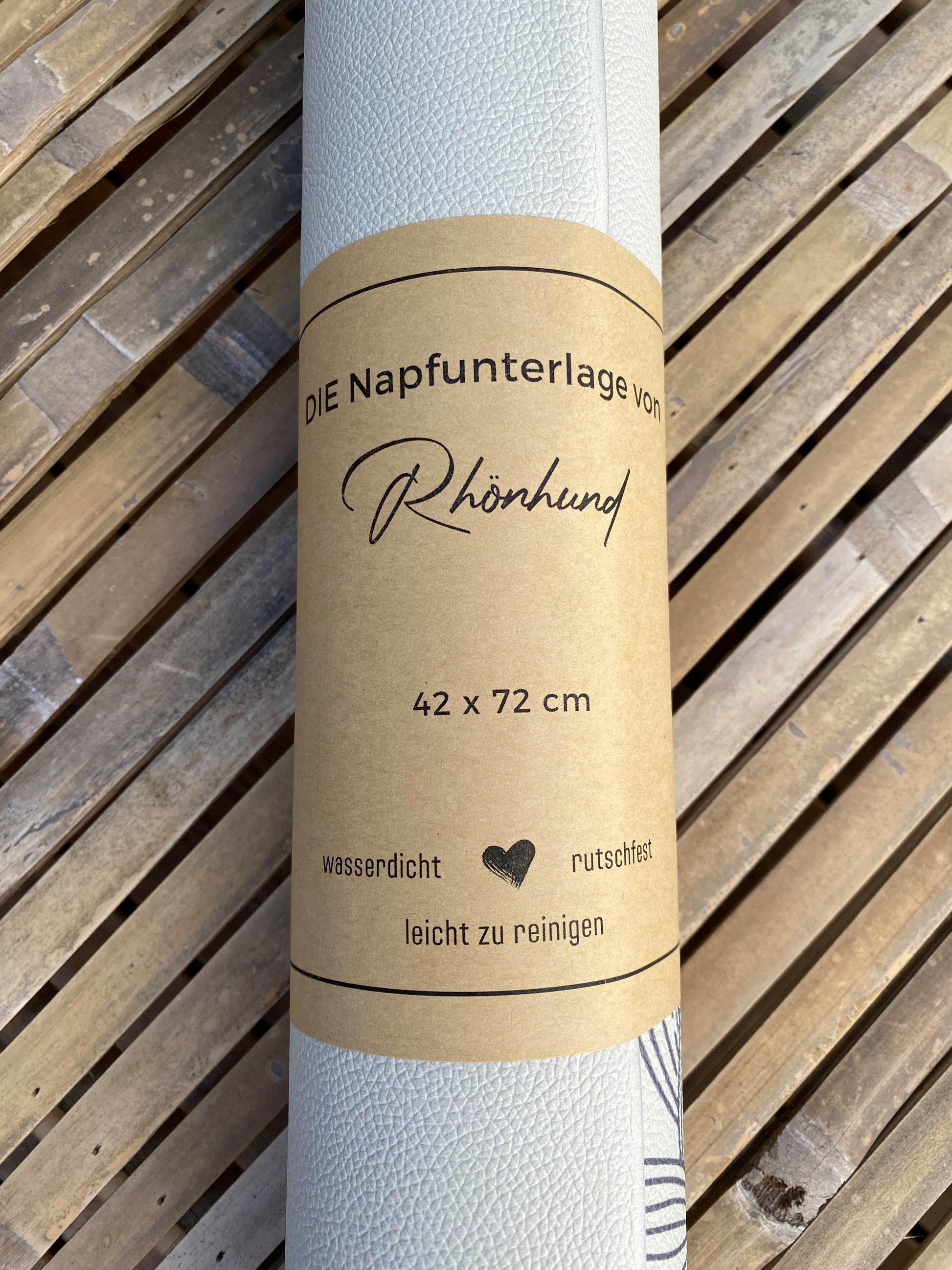 Die Rhönhund Napfunterlage ist schlicht, elegant und hat ein einzigartiges Design. Sie passt gut zu allen dunklen und hellen Fußböden. Sie ist größer als herkömmliche Matten und deckt daher mehr Fläche ab um den Boden vor Verunreinigungen und Wasser zu schützen.