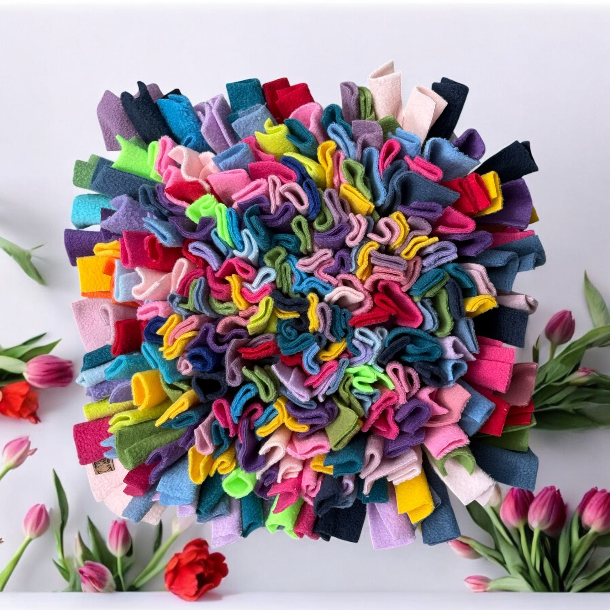 Ein Schnüffelteppich dient zur Kopf- & Nasenarbeit von unseren Fellnasen. Einfach Leckerchen im Schnüffelteppich verstecken und suchen lassen.